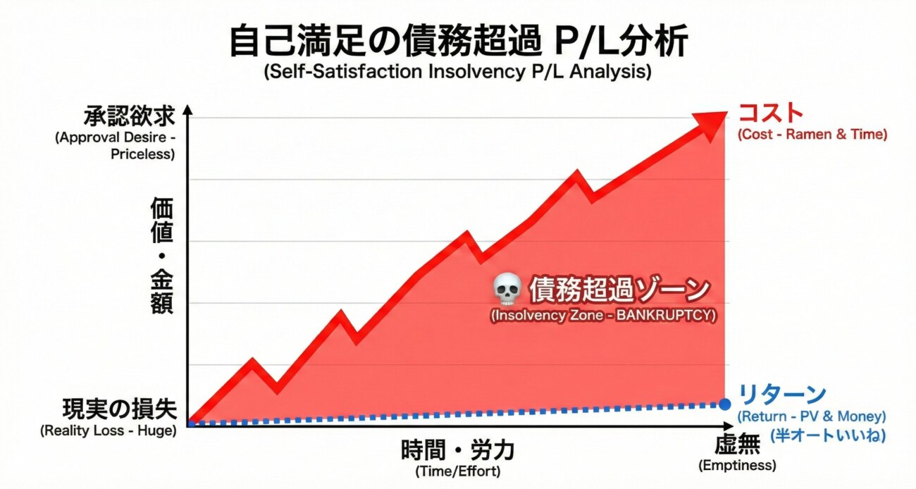 私のブログの月間アクセス数と、ラーメン一杯の代金。そして執筆にかかる労力と時間。 これらを損益計算書(P/L)に落とし込んだ時、そこに現れるのは真っ赤な赤字、すなわち「自己満足の債務超過」である。